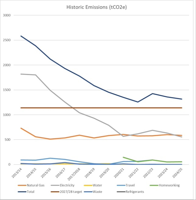 We cut reported emissions from 2583 tCO2e in 2013/14 to 1360 tCO2e in 2023/24