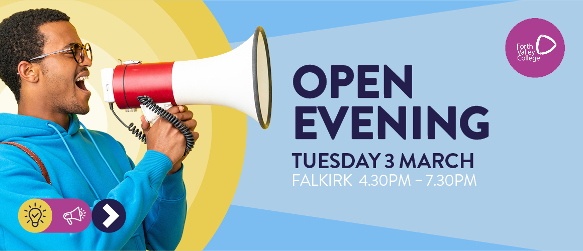 Come along to our Open Evening at Falkirk Campus on Tuesday 3 March from 4.30pm-7.30pm to find out more about courses available at Forth Valley College as well as apprenticeship opportunities.