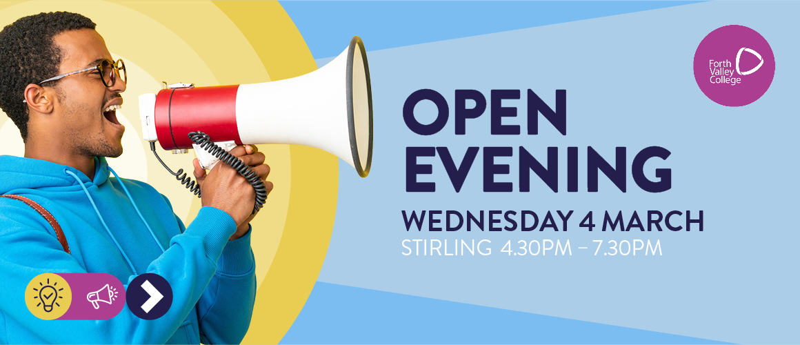 Come along to our Open Evening at our Stirling Campus on Wednesday 4 March from 4.30pm-7.30pm to find out more about courses available at Forth Valley College as well as apprenticeship opportunities.