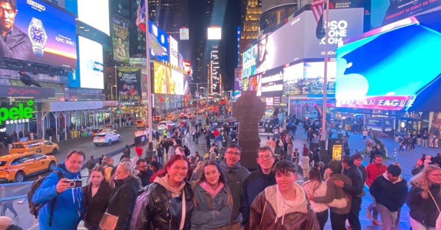 Welcome support from Screen Scotland helped FVC students Kyran Adam and Bethany Holmes from HND Production Arts, Gabrielle Millar from HND Make-up Artistry and Conor Duff from HND Media Production, and Art and Design Lecturer Gabriele Jogelaite and Operations Manager Colin Gunning make the four day trip to the Big Apple for the special event from 4-7 April.
