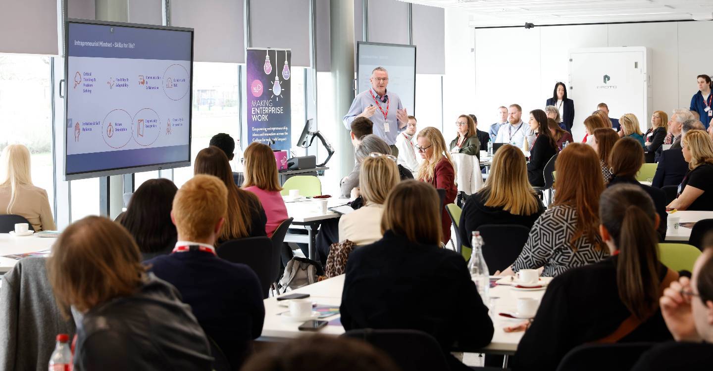 FVC Principal Kenny MacInnes welcomed everyone to the event and introduced the keynote speaker Professor Ross Tuffee – one of the main drivers of the Entrepreneurial Campus Blueprint at the national Further Education level, which is a key government action as part of the National Strategy for Economic Transformation - who delivered a presentation on ‘Why Entrepreneurial Mindsets Matter Now’.