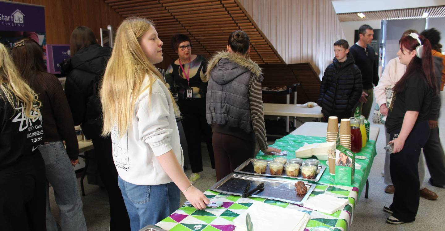 Two groups of students were able to put their skills to good use on a pop-up stand to promote Stirling Good Food Fortnight recently.