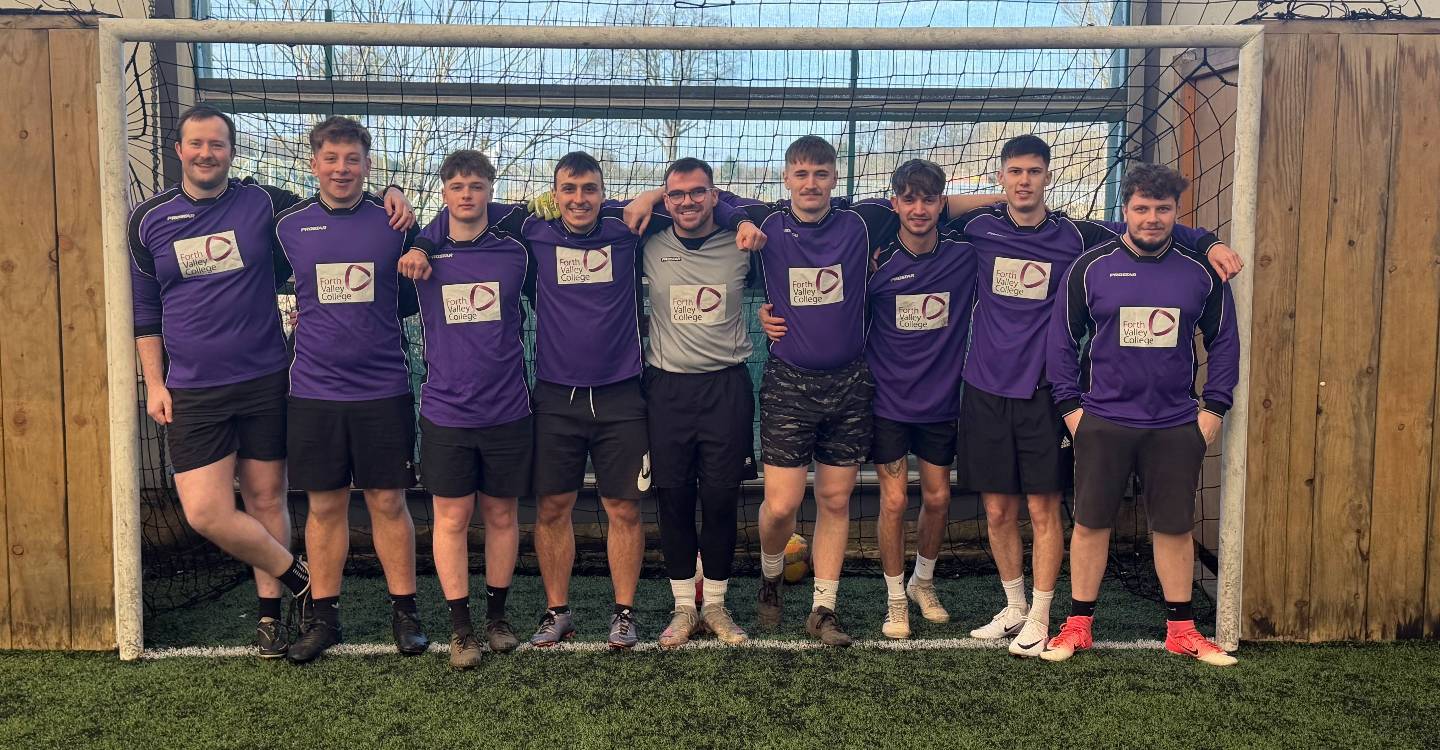 A Forth Valley College football squad comprising nine modern apprentices from the College’s Babcock Fabrication and Welding courses, attended a 7-a-side Construction and Trades tournament in Edinburgh on Thursday 19 March.