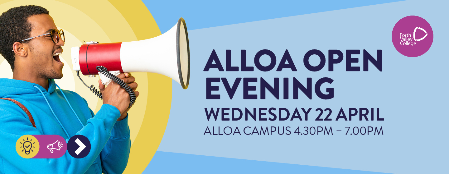 Come along to our Open Evening at our Alloa Campus on Wednesday 22 April 2026 to find out about courses available at Forth Valley College, including: